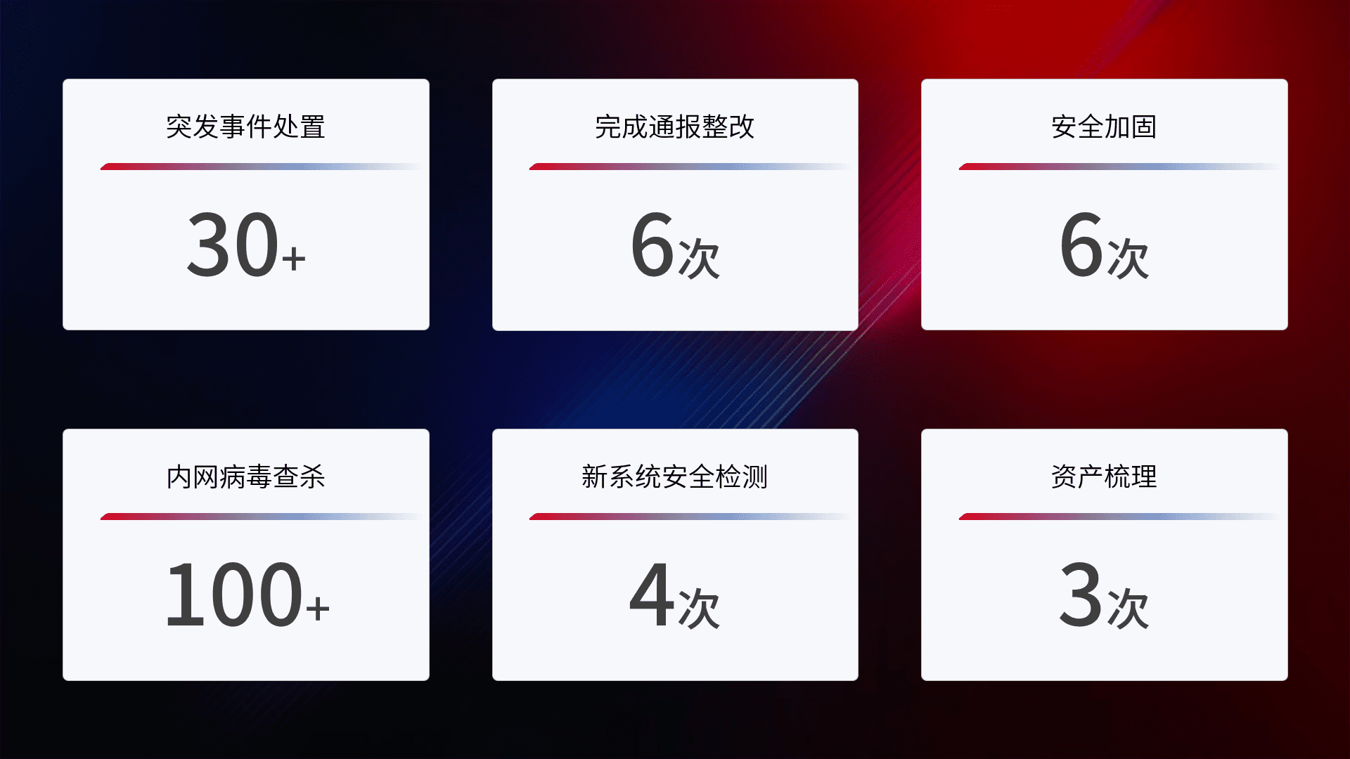 网络安全加固与风险管理:通过技术加固手段,,,,如加强区域隔离,,,缩减攻击内网横向移动的范围;优化现有网络安全管理制度,,,降低网络威胁暴露面,,减少被黑客攻击的可能性。。